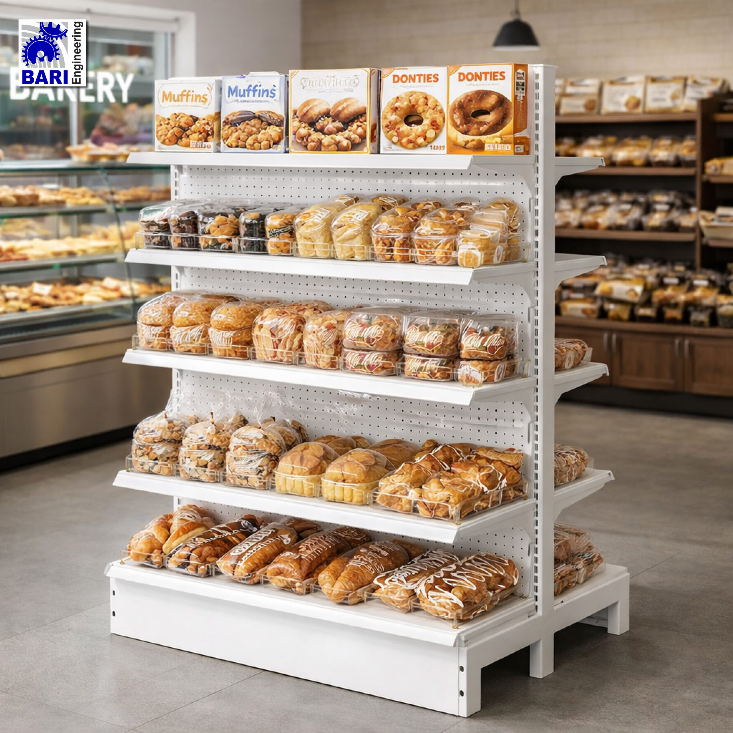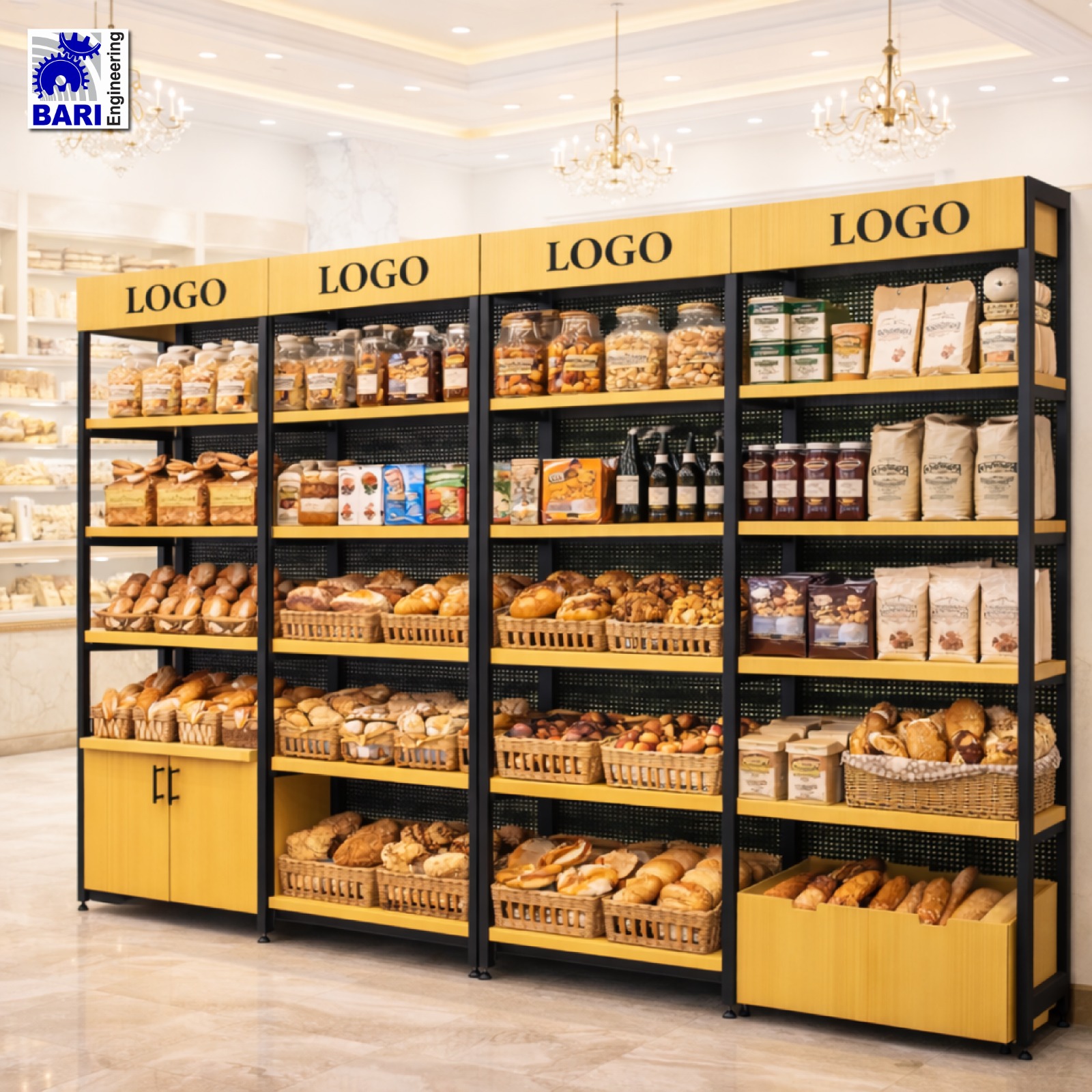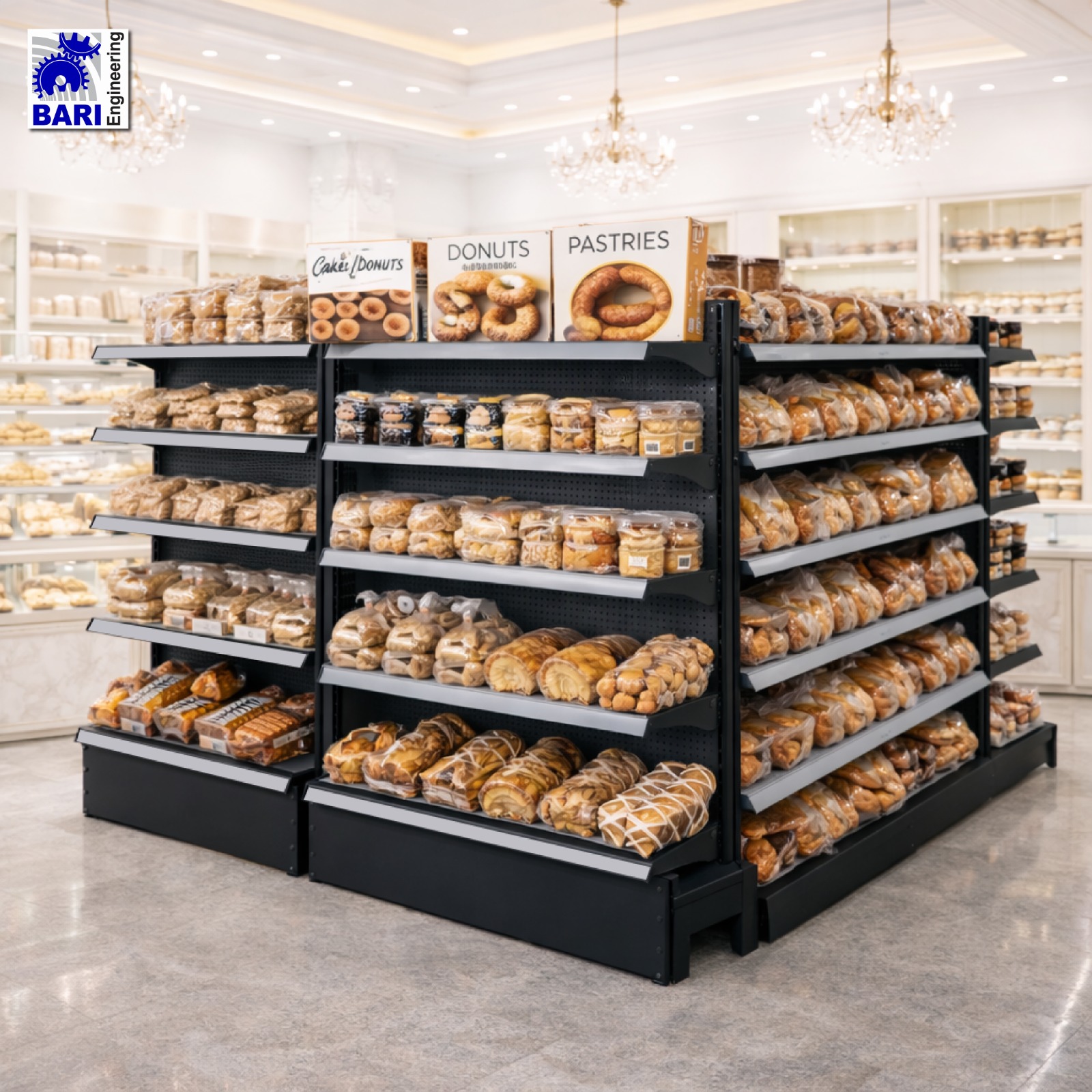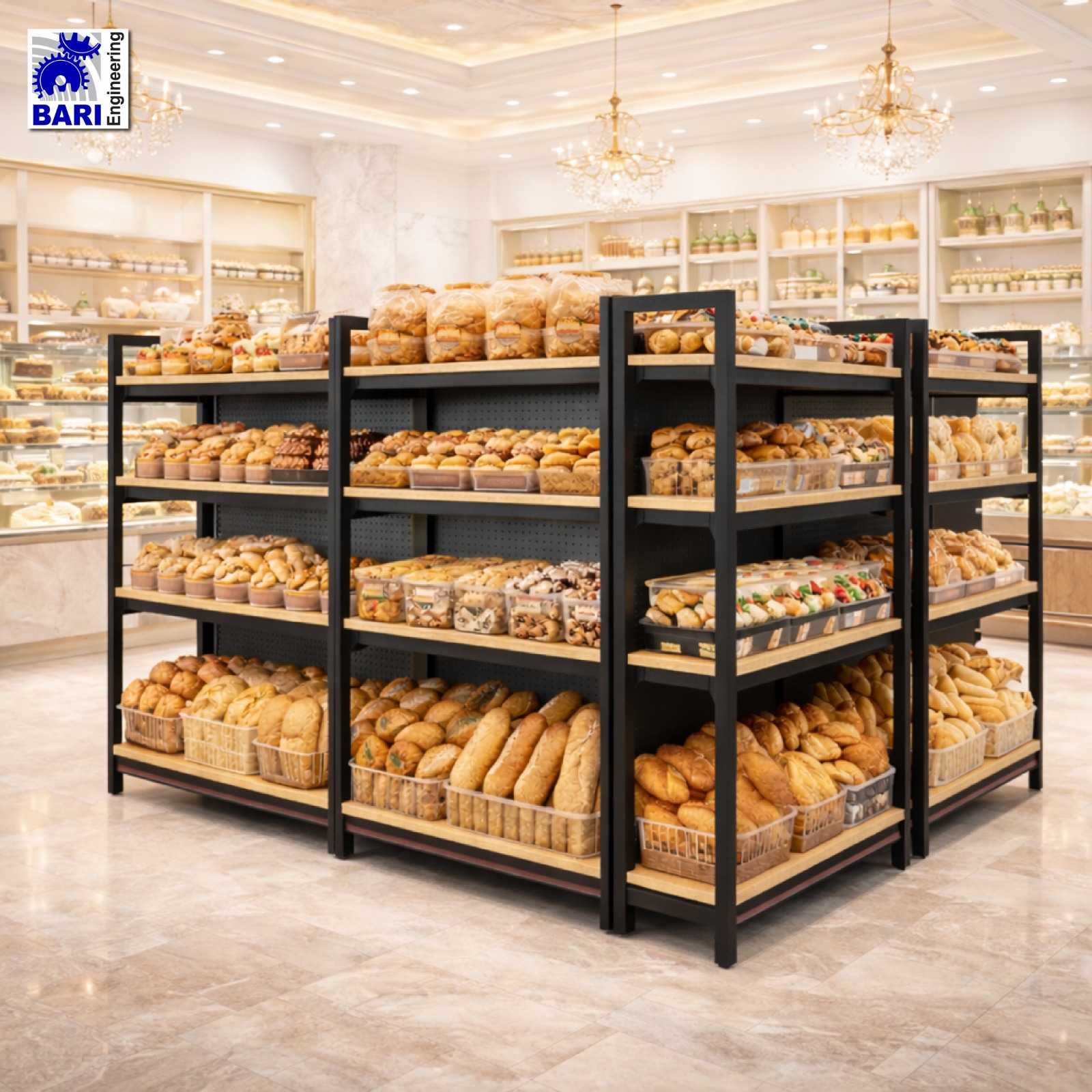 Where we bring you the perfect storage and display solution for your bakery products. Our Bakery shop rack caters to your bakery’s distinct needs, offering functionality, organization, and an attractive presentation.