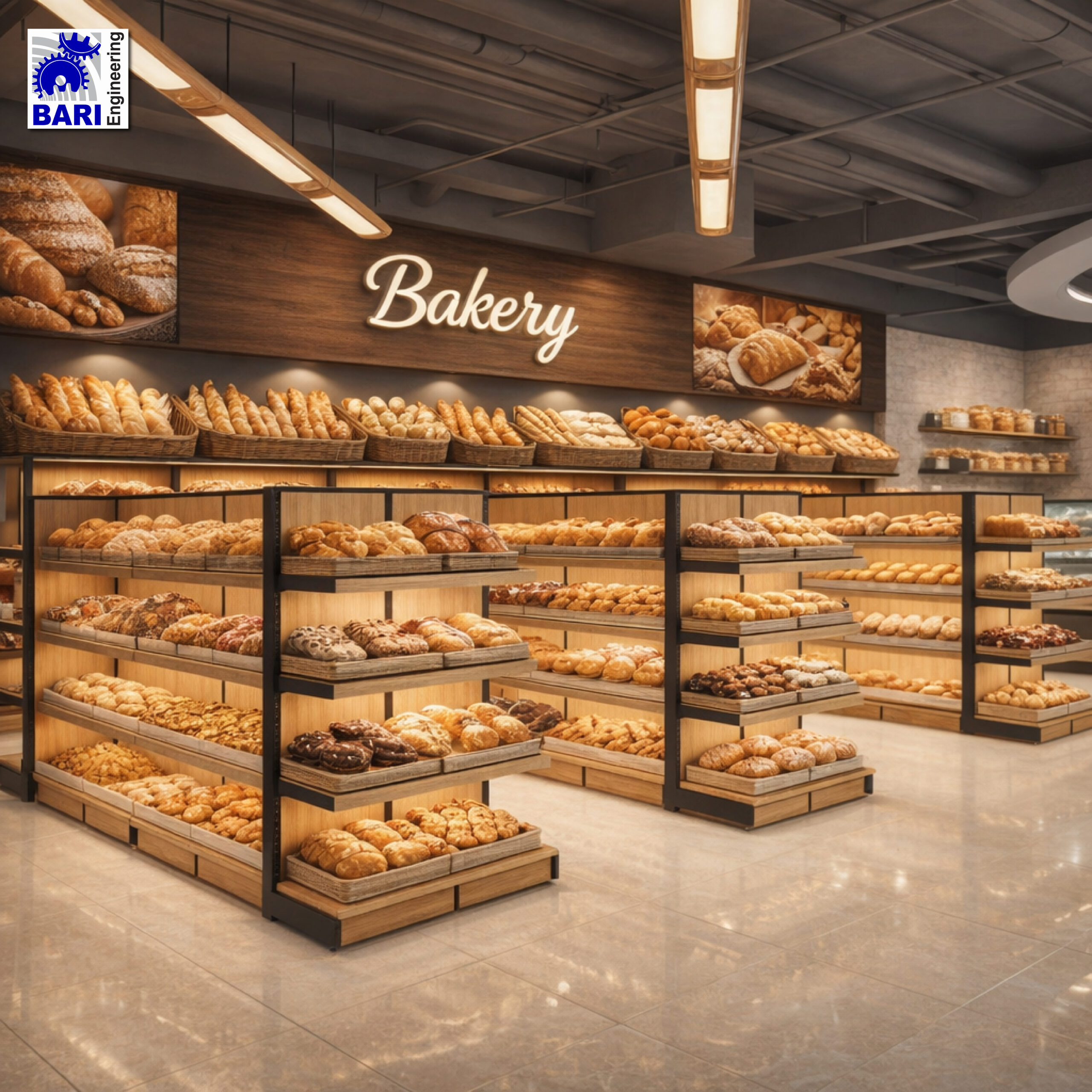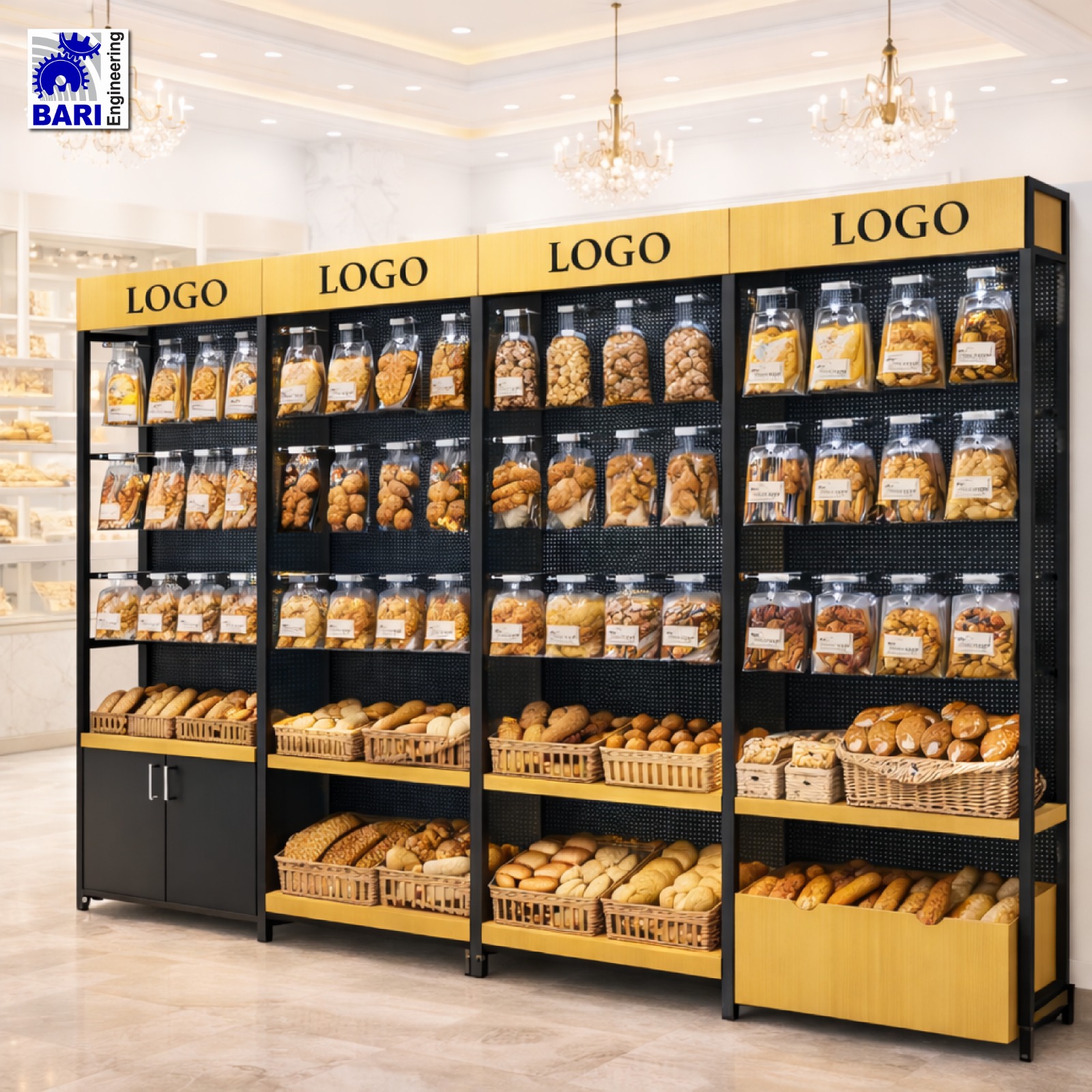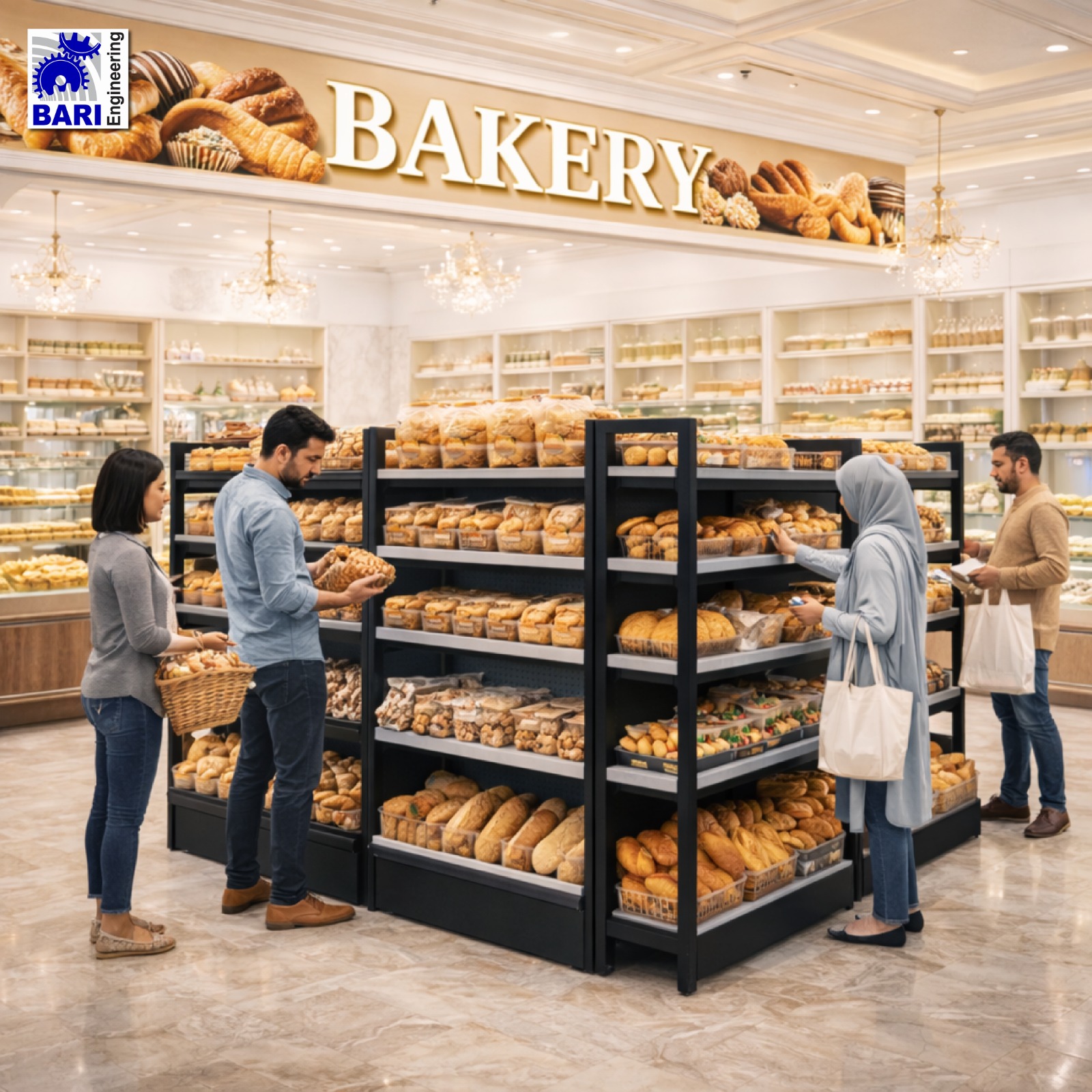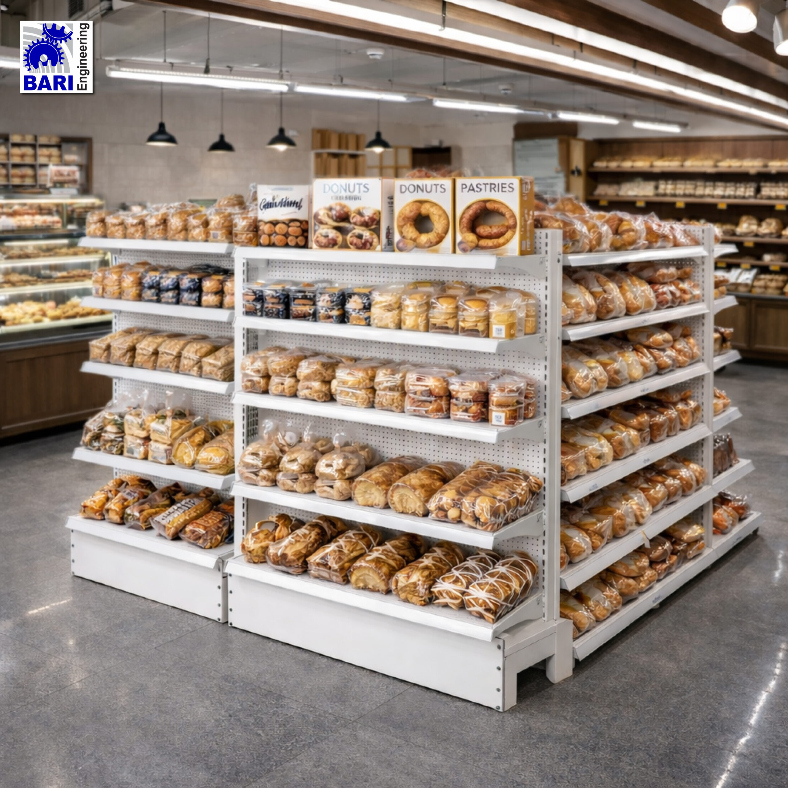 Where we bring you the perfect storage and display solution for your bakery products. Our Bakery shop rack caters to your bakery’s distinct needs, offering functionality, organization, and an attractive presentation.