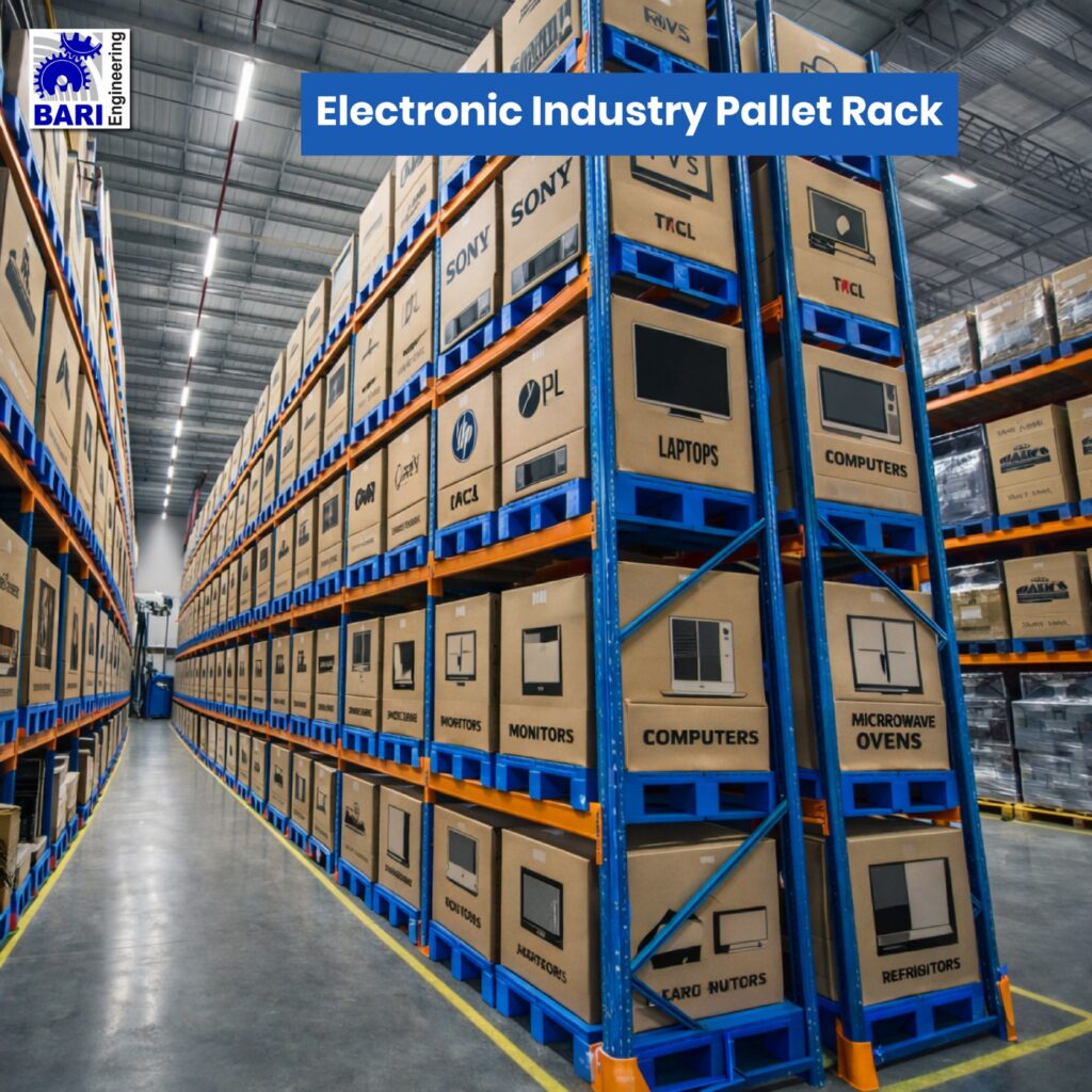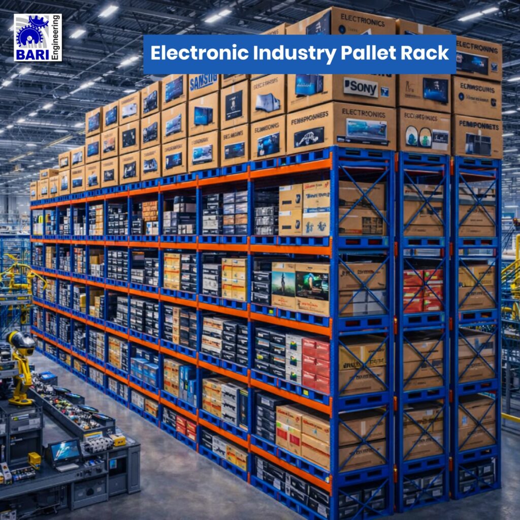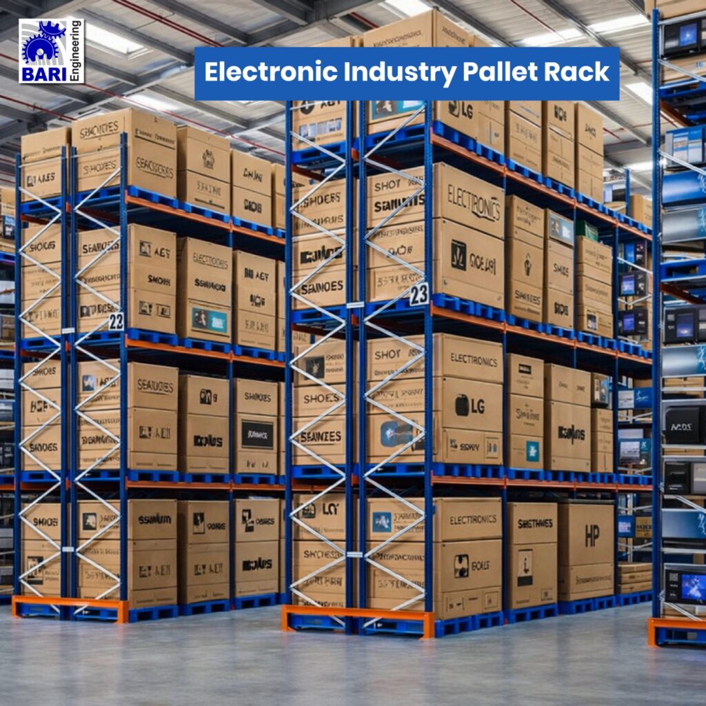 For safe, organized, and high-efficiency storage in the electronics sector, Bari Steel Rack offers customized Electronic Industry Pallet Rack systems built for precision and durability. From manufacturing plants to electronics retail stores, our racking systems are designed to accommodate sensitive components, boxed items, and bulky electronic appliances with ease.