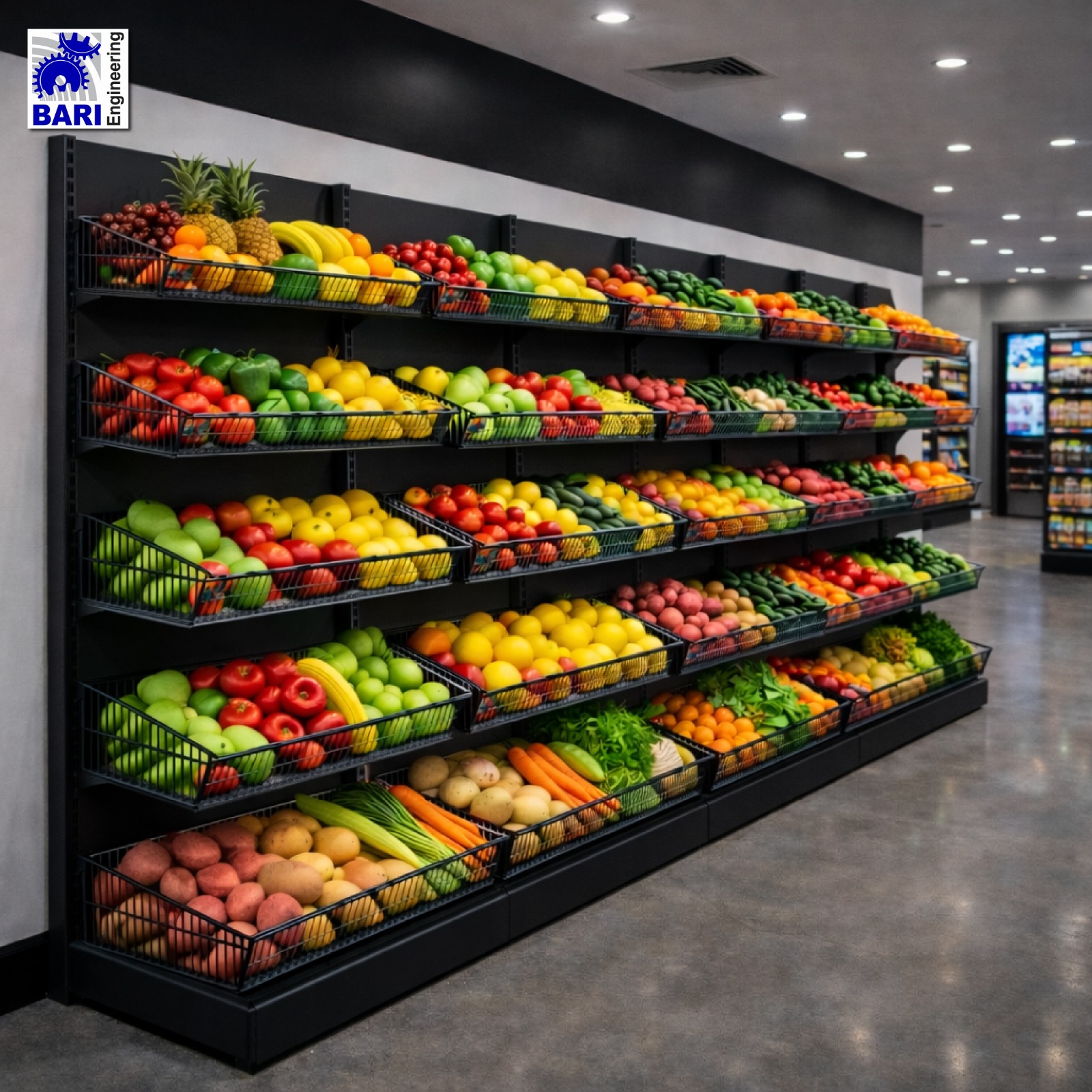 Research studies have shown that more than 60% of the purchases are credited to vegetable & fruit racks manufacturers retail displays.