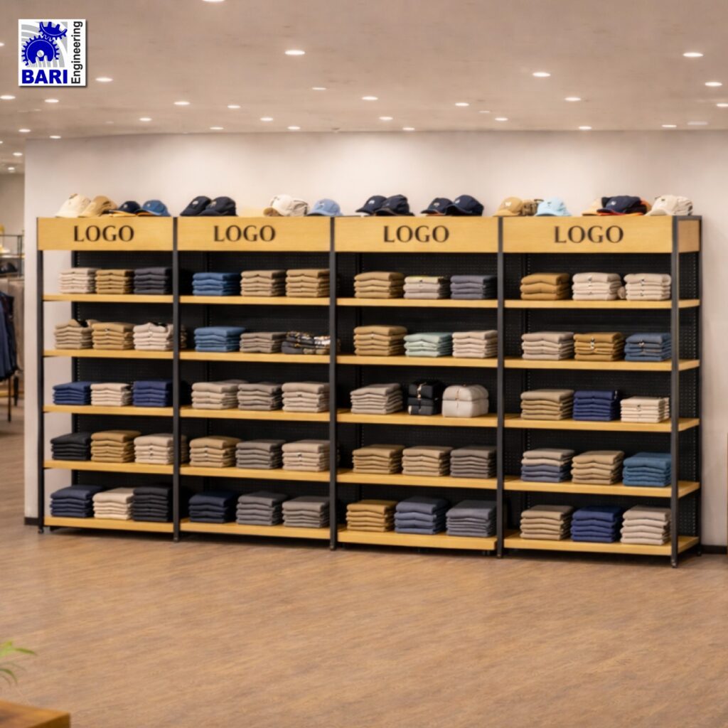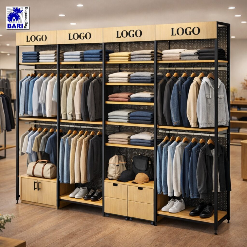 Attractive Visual Displays: The smart and attractive design of Garment Display Racks, such as a wooden garment rack, enhances the visibility and browseability of your merchandise, creating an inviting shopping experience.
