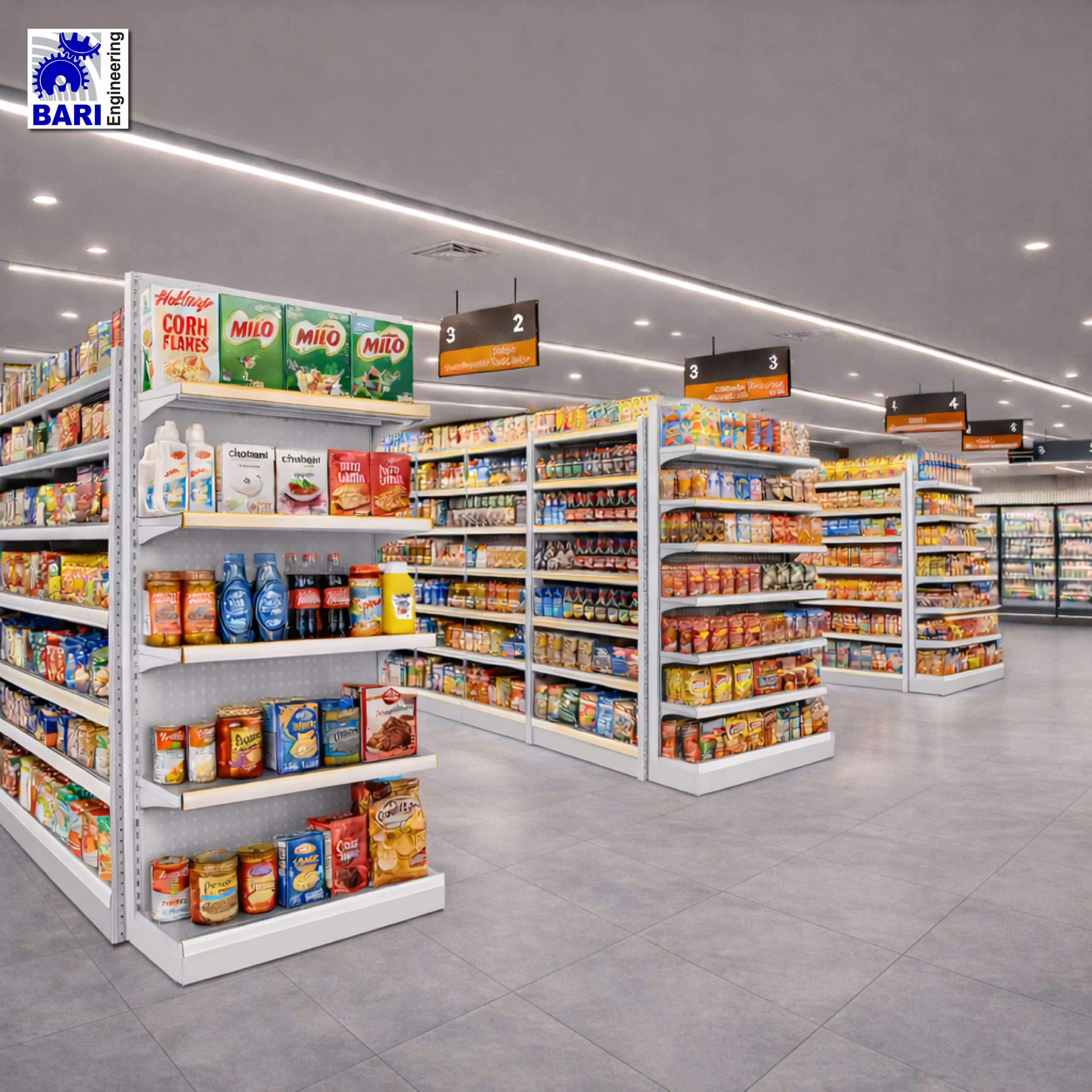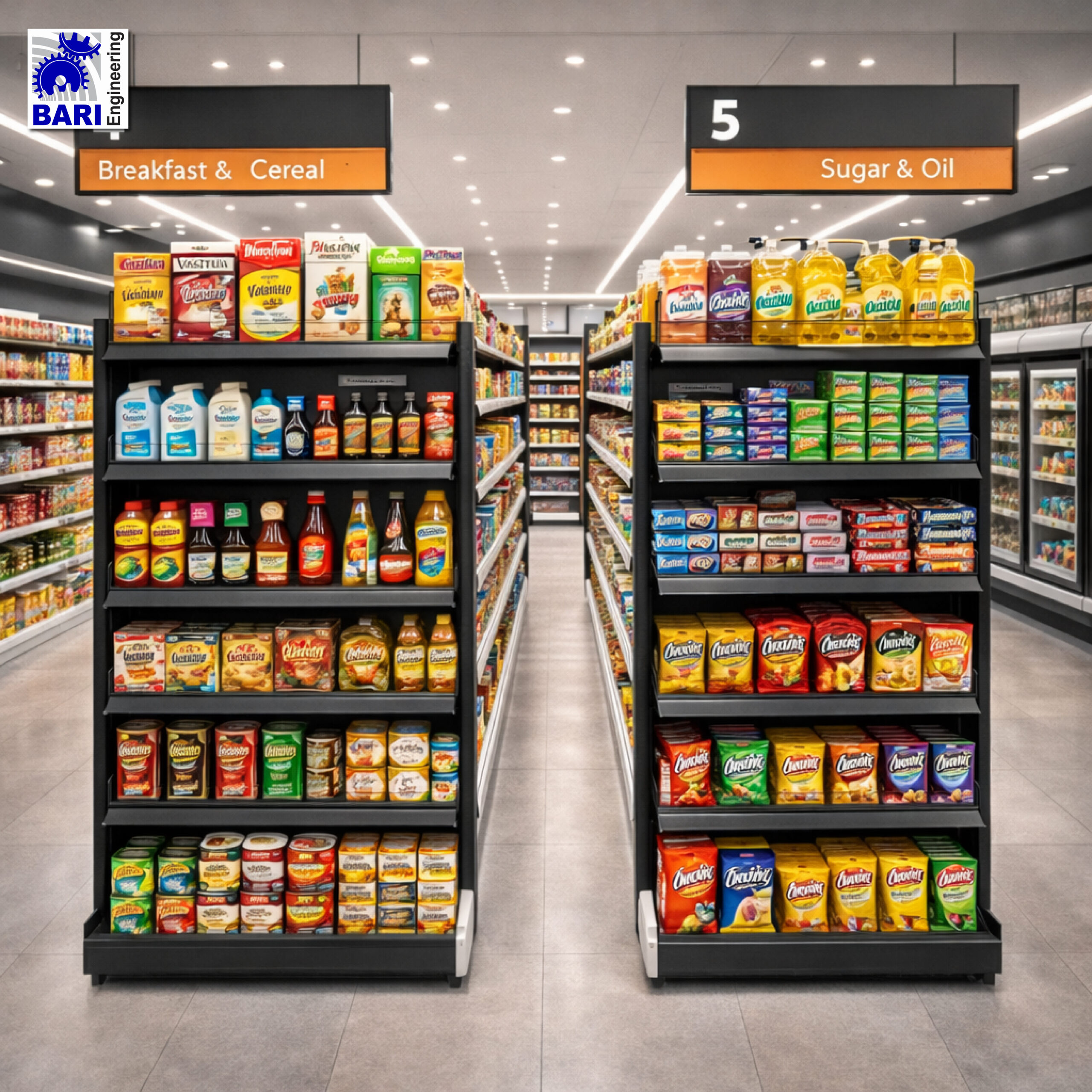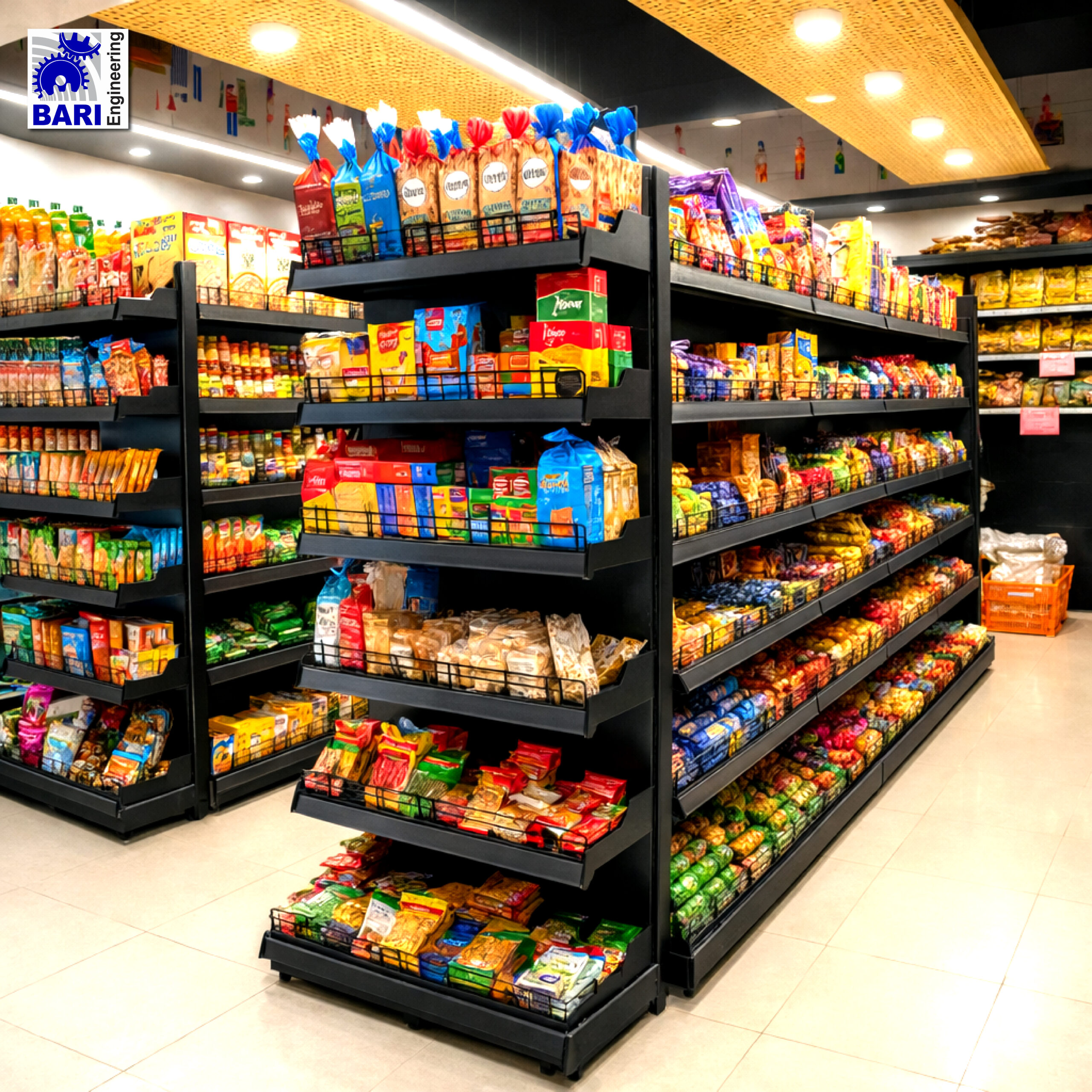 Grocery Store Rack, including wall display racks and store shelving, are essential for effective merchandising. They provide ample storage space, particularly for heavy and large items. Grocery store racks for sale offer a neat and durable solution, optimizing space utilization. Choose grocery store racks in Pakistan to make them a core element of your merchandising strategy.