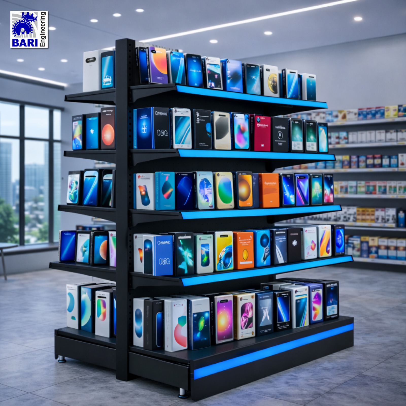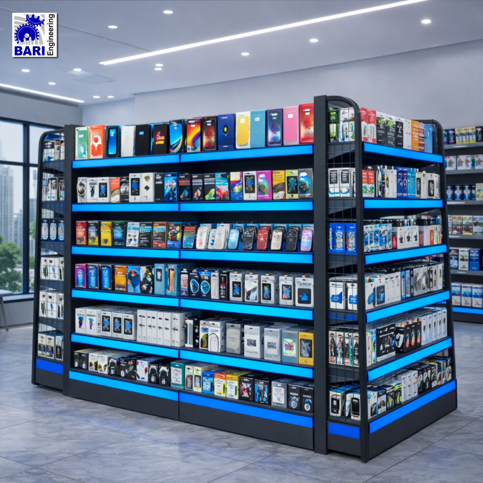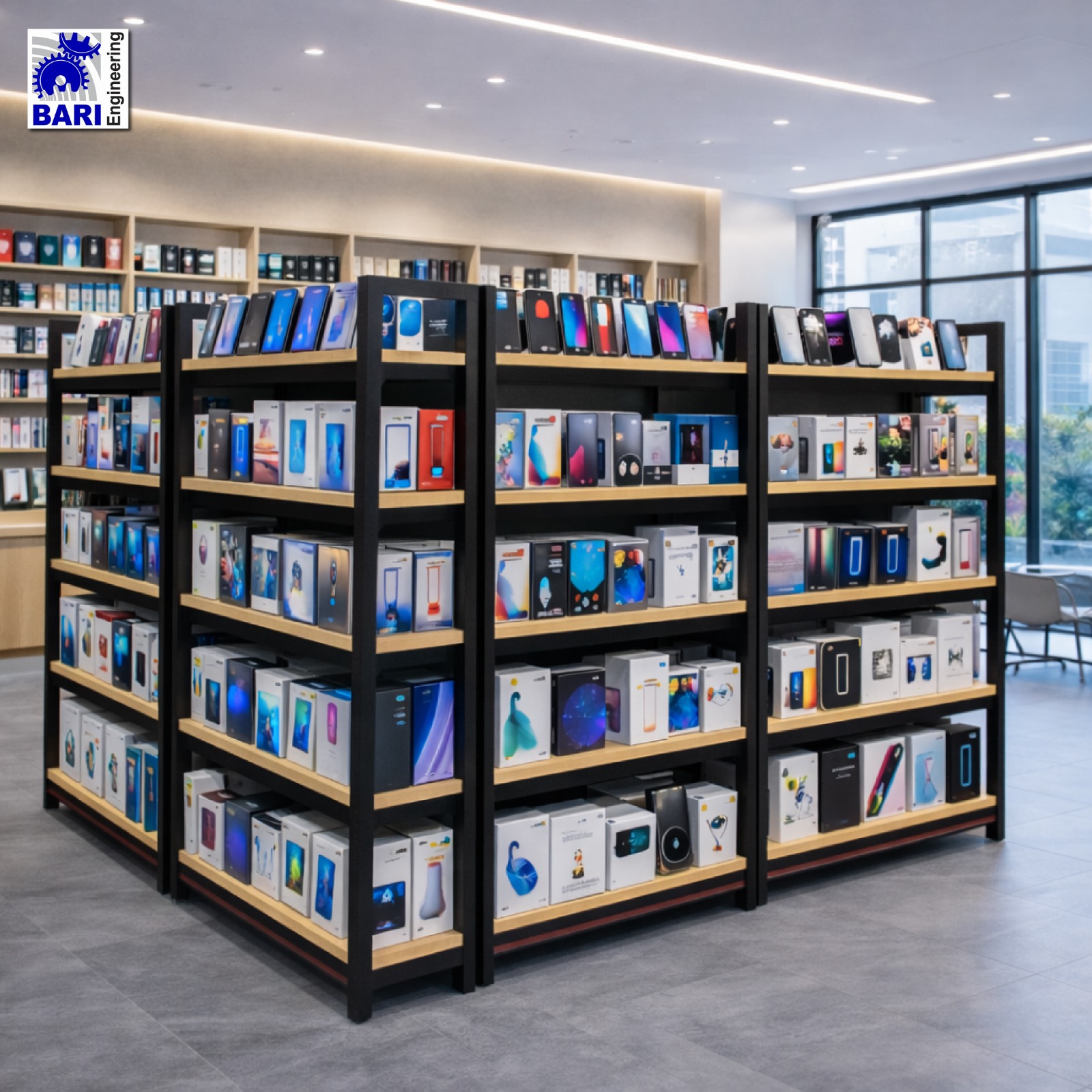 Need an integrated setup? We also offer mobile & computer shop rack design for hybrid stores. This flexible merchandising helps you manage a variety of inventory—mobiles, laptops, accessories—all in a smooth layout.
