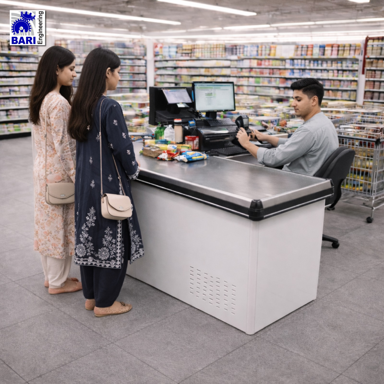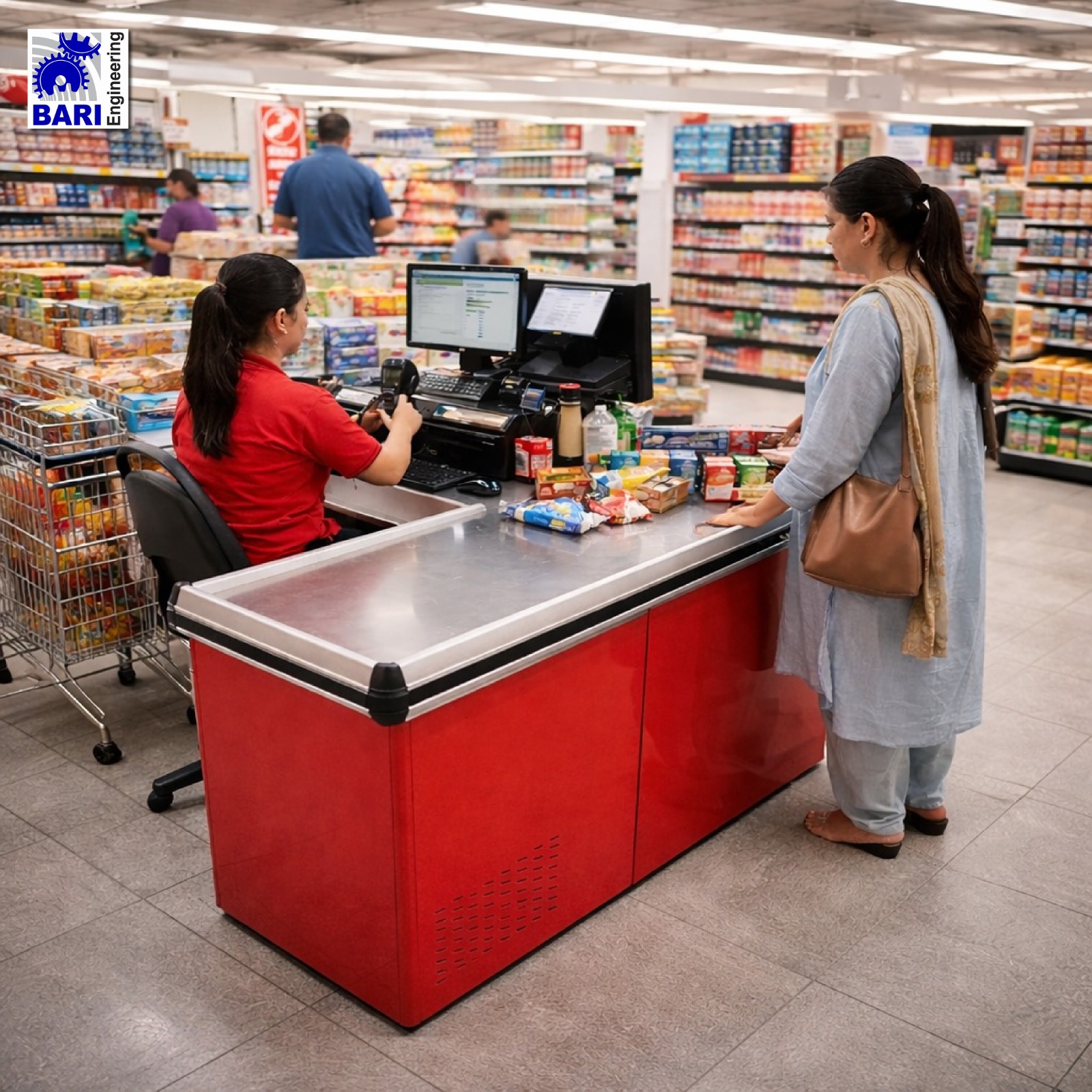 Our supermarket cash counter manufacturers are crafted from high-quality materials, ensuring long-lasting performance even under heavy use. Designed to withstand the demands of high-traffic areas, these Small supermarket cash counter design combine strength and style for a reliable checkout solution.