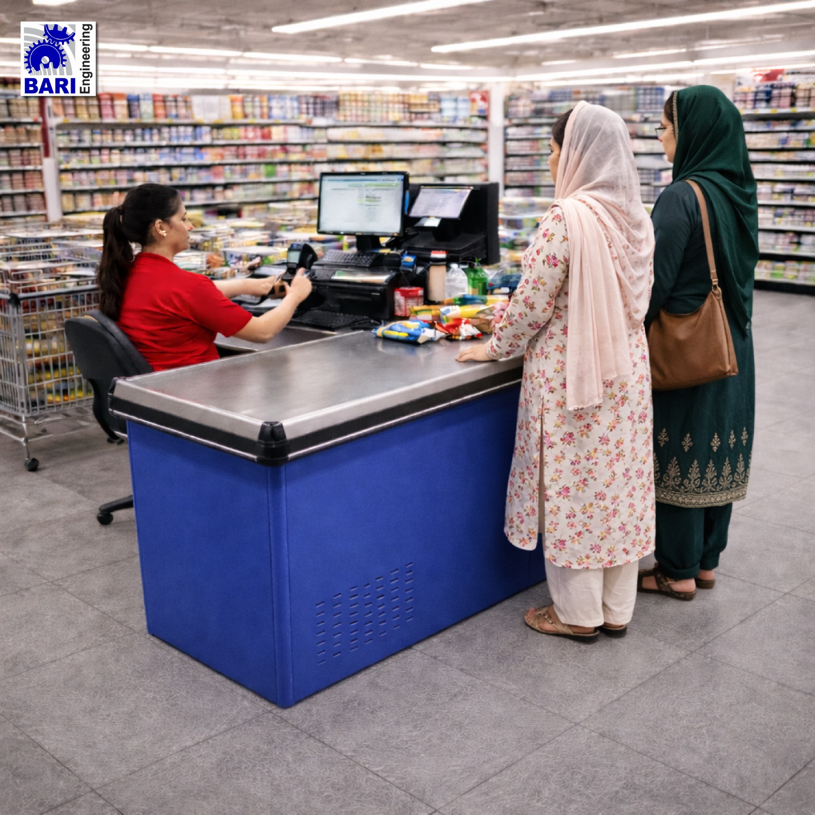 Choose from a variety of colors, materials, and supermarket cash counter dimensions sizes to create the perfect supermarket cash counter table design that complements your supermarket’s interior. Customizable options make it easy to align your checkout counters with your brand aesthetics.