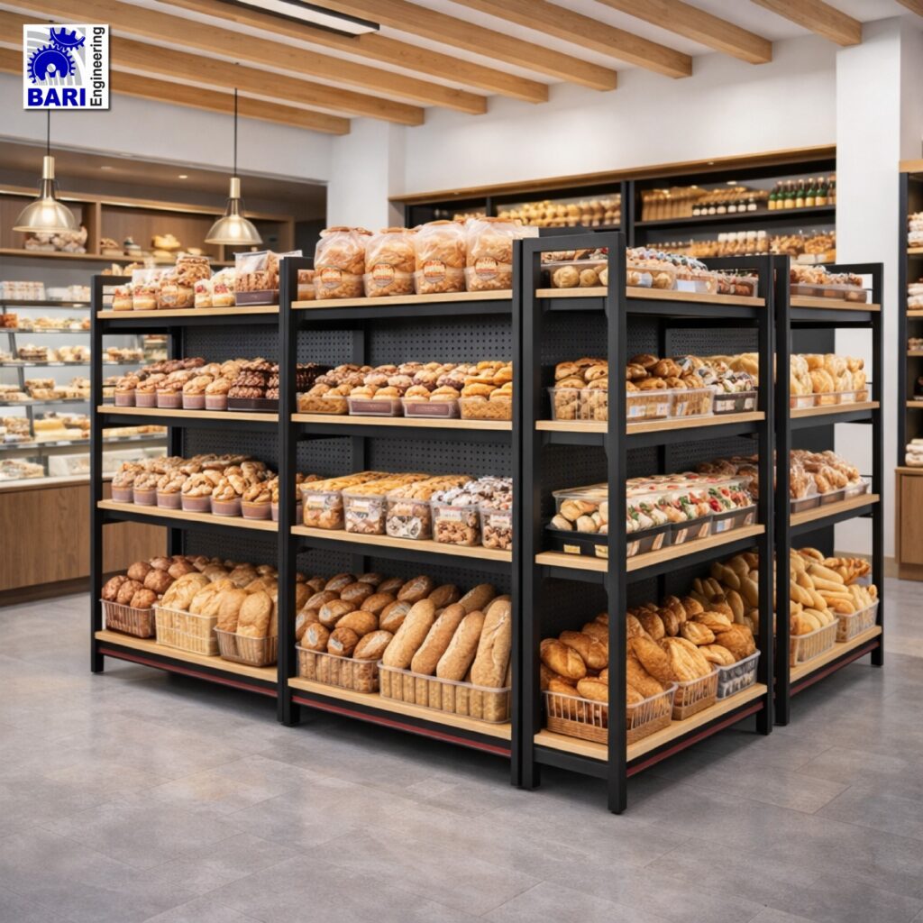 Customization: Tailor every rack to your display needs—adjust size, shape, finish, and layout. Our solutions include adjustable shelves, hanging rods, and compartments, ideal for wooden bakery display racks in Pakistan.